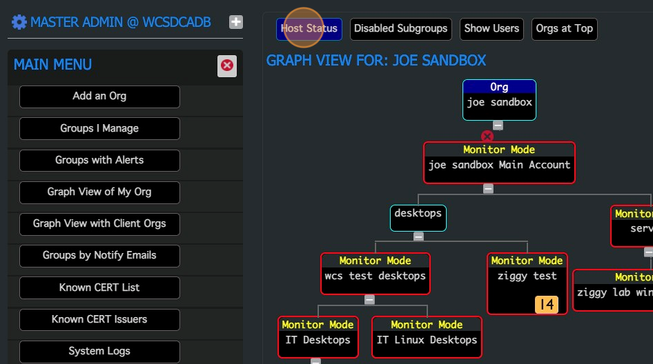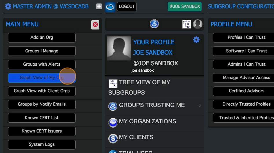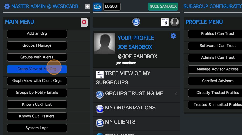 Now Mike and David have admin access to that Security Group and any of its subgroups inheriting the trust for the "WCS Admins" admin group