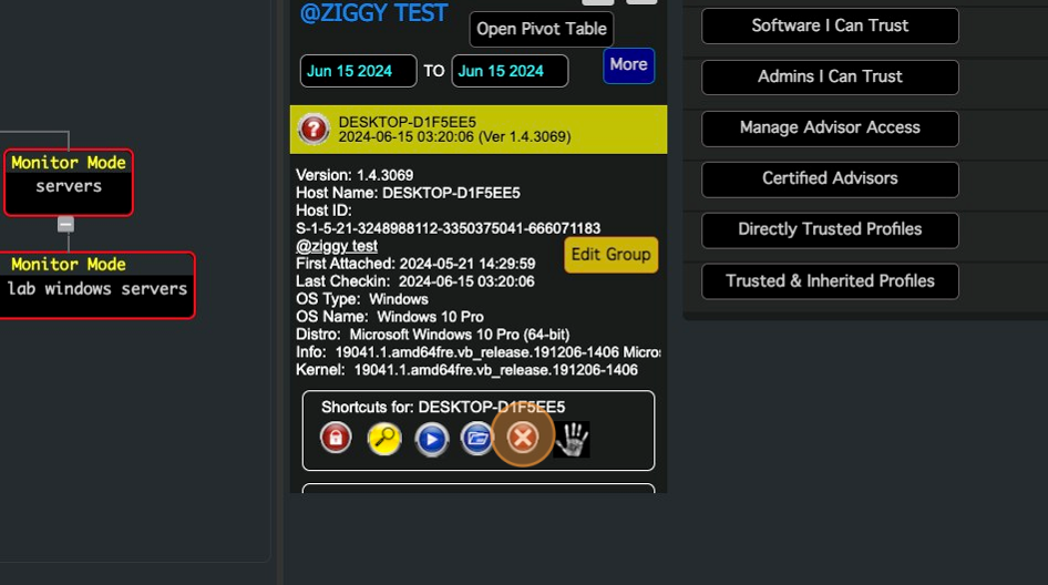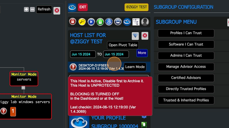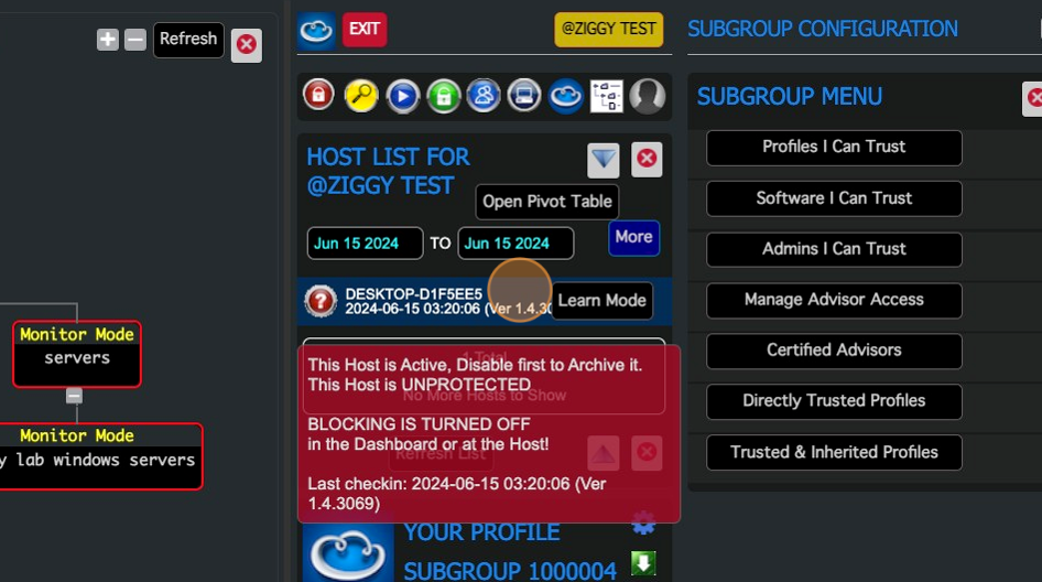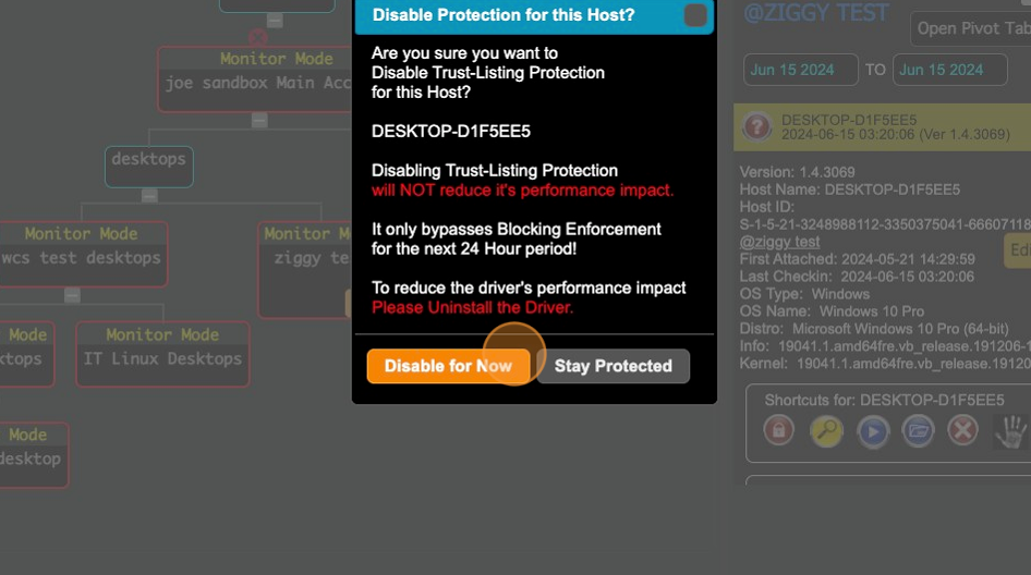 Flexible Operation Modes: Trust Lockdown supports multiple operating modes, Blocking, Monitoring and Learning modes, providing flexibility in how execution control policies are enforced, monitored and created.